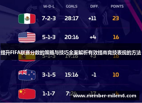 提升FIFA联赛分数的策略与技巧全面解析有效提高竞技表现的方法